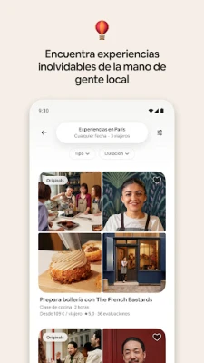 Vaya más allá de los destinos y sumérjase en la esencia de cada cultura. Airbnb le invita a vivir el corazón de las ciudades a través de miles de experiencias auténticas, guiadas por sus propios habitantes, quienes comparten su conocimiento y pasión. Desde recorridos secretos por rincones emblemáticos hasta clases de cocina local que despiertan el paladar, o talleres creativos y encuentros con la naturaleza; cada actividad es verificada por su calidad y autenticidad. Adicionalmente, explore las exclusivas Airbnb Originals, encuentros diseñados por talentos únicos, solo disponibles para quienes eligen explorar con Airbnb. Para potenciar su estadía o incluso su día a día, aproveche una gama de servicios excepcionales: chefs privados, sesiones fotográficas, tratamientos de belleza o bienestar, y entrenadores personales, todos ofrecidos por expertos con calidad asegurada, listos para atenderle, ya sea de viaje o en la comodidad de su hogar.
