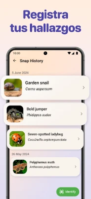 Cada descubrimiento es un tesoro, y Bug ID se asegura de que ninguno se pierda. Tus hallazgos se guardan automáticamente en un historial visual detallado, eliminando la necesidad de registros manuales. Además, puedes dar rienda suelta a tu pasión por la entomología creando y gestionando colecciones personalizadas. Organiza tus especies favoritas, documenta encuentros raros o compila un catálogo de los insectos de tu región. Accede fácilmente a tus colecciones y a toda la información esencial en cualquier momento, convirtiendo tu dispositivo en un archivo entomológico interactivo y siempre a mano.