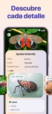 Con solo una instantánea, Bug ID emplea su avanzada tecnología de inteligencia artificial para identificar de inmediato cualquier araña, mosquito, mariposa, oruga o cualquier otra especie de insecto que capte tu atención. Más allá de la identificación, la aplicación se transforma en tu enciclopedia personal, ofreciéndote perfiles exhaustivos. Sumérgete en detalles sobre sus ciclos de vida, distribución geográfica, impacto en el ecosistema y consejos prácticos para el control y la prevención de plagas, todo ello respaldado por información precisa y actualizada por expertos.