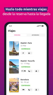 Una vez realizada tu reserva, la aplicación lastminute.com se convierte en tu centro de mando personal. Accede instantáneamente a todos los pormenores de tu viaje: horarios de vuelo, detalles del aeropuerto, información precisa de tu hotel y todos los servicios adicionales contratados. Olvídate de las preocupaciones con el servicio 'Check-in NoProblem', que envía tus tarjetas de embarque – incluso para vuelos low cost – directamente a tu smartphone y permite añadirlas fácilmente a tu wallet digital. ¿Anhelas una relajación total? Explora las ofertas de Vacaciones Todo Incluido o combina Vuelo + Hotel Todo Incluido para una experiencia donde cada detalle está cubierto. lastminute.com está dedicada a brindarte las mejores promociones, tarifas exclusivas y un servicio al cliente prioritario.