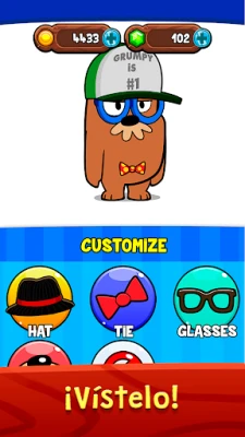 La personalización es clave para maximizar la diversión en el mundo de Mr. Grumpy. ¿Te apetece ver a Mr. Grumpy con un sombrero estrafalario, unas gafas de sol o un atuendo inesperado? Tu creatividad no tiene límites al vestir a este peculiar personaje. Además, tienes la libertad de transformar su hogar, añadiendo detalles que, para su disgusto, lo harán aún más "cómodo" para ti. Las posibilidades de interacción son variadas: desde alimentarlo con los manjares más picantes, observar su reacción, hasta alterar sus rutinas diarias, como un baño o despertarlo de su siesta, solo para presenciar la inolvidable cascada de emociones que provocará en Mr. McGrump. Cada gesto, cada pequeña molestia, te recompensará con valiosas monedas.